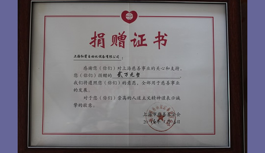 2015年,上海紅箭自動化設備有限公司為上海市慈善基金會捐款 2015